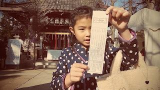 この後は、望来の七五三でお世話になっている「日枝神社」に。日枝神社では、とんぼ玉付のおみくじを。結果は「末吉」。