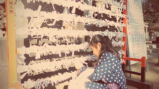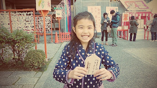 京浜伏見稲荷神社では、望来が絵馬を書きました。小学2年生になった望来ですが、九九に苦戦していることもあり、絵馬に書いたのは「さんすうができますように おかもとみらい」。絵馬をかけると、望来の上にある絵馬は、HanaCAFE nappa69さんの絵馬。なんか、ハッピーなキモチになりました♪